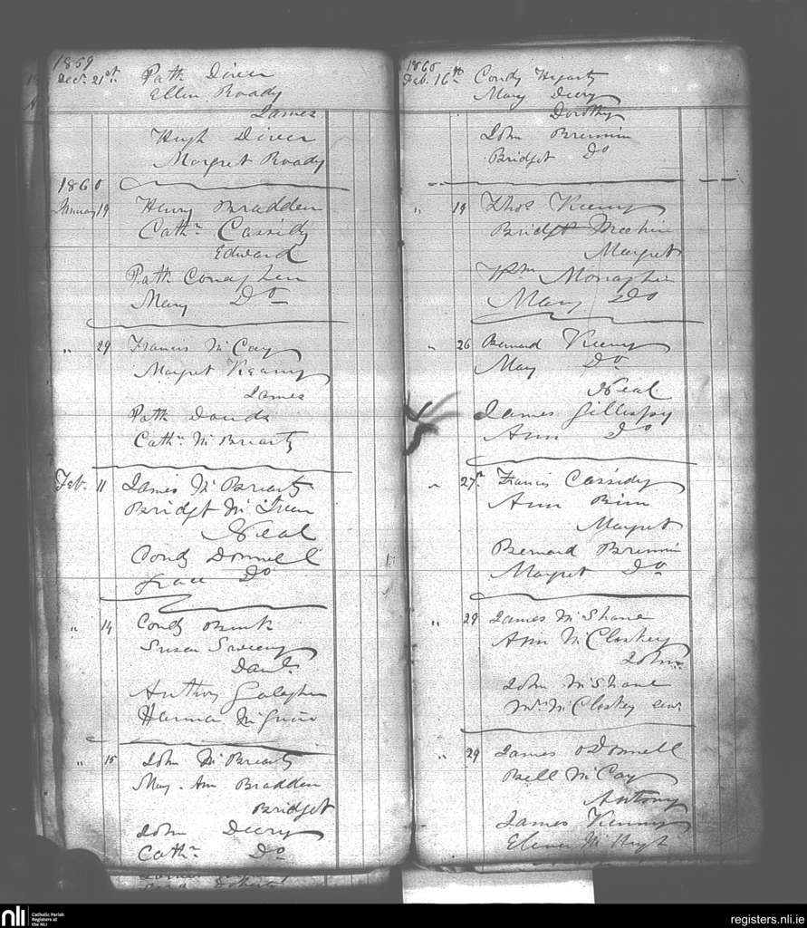 Killaghtee; County of Donegal; Diocese of Raphoe. Baptisms, Dec. 1859 to Feb. 1860