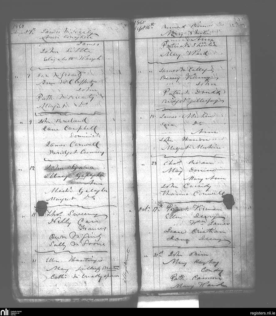 Killaghtee; County of Donegal; Diocese of Raphoe. Baptisms, Aug. 1860 to Oct. 1860