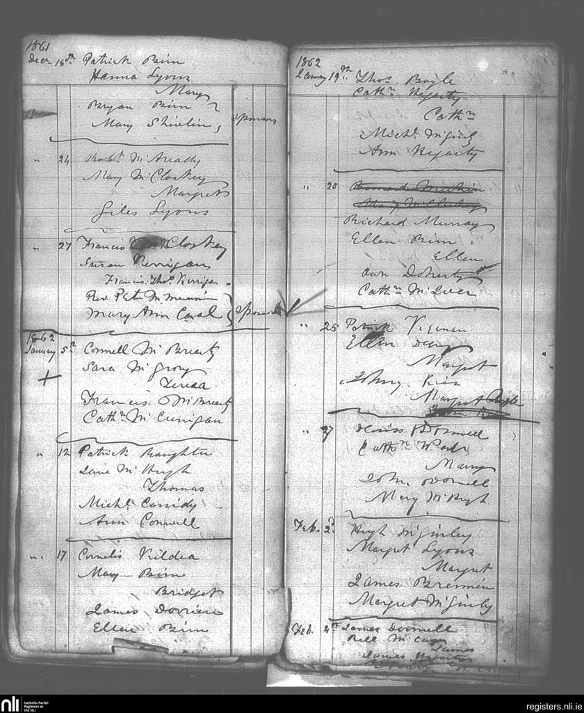 Killaghtee; County of Donegal; Diocese of Raphoe. Baptisms, Dec. 1861 to Feb. 1862