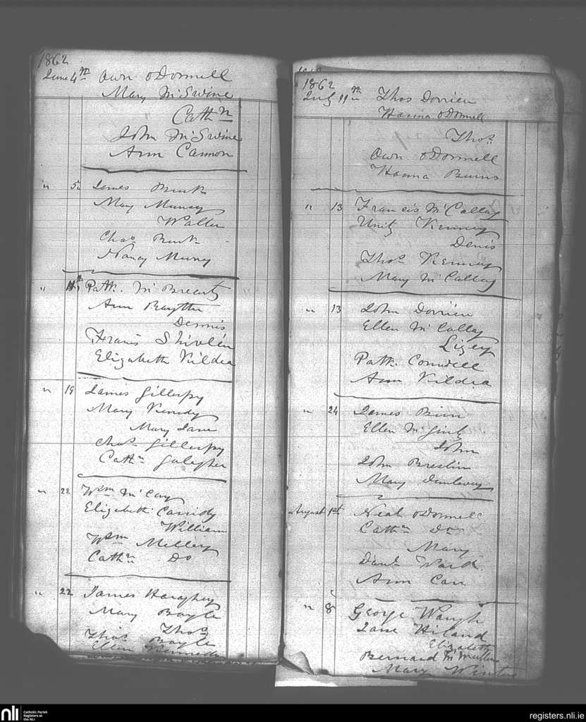 Killaghtee; County of Donegal; Diocese of Raphoe. Baptisms, June 1862 to Aug. 1862