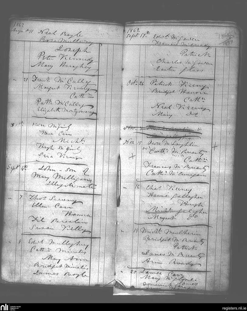 Killaghtee; County of Donegal; Diocese of Raphoe. Baptisms, Aug. 1862 to Nov. 1862