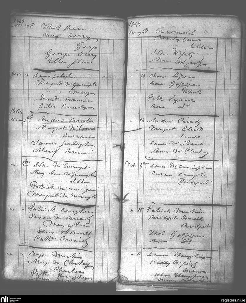 Killaghtee; County of Donegal; Diocese of Raphoe. Baptisms, Nov. 1862 to Feb. 1863