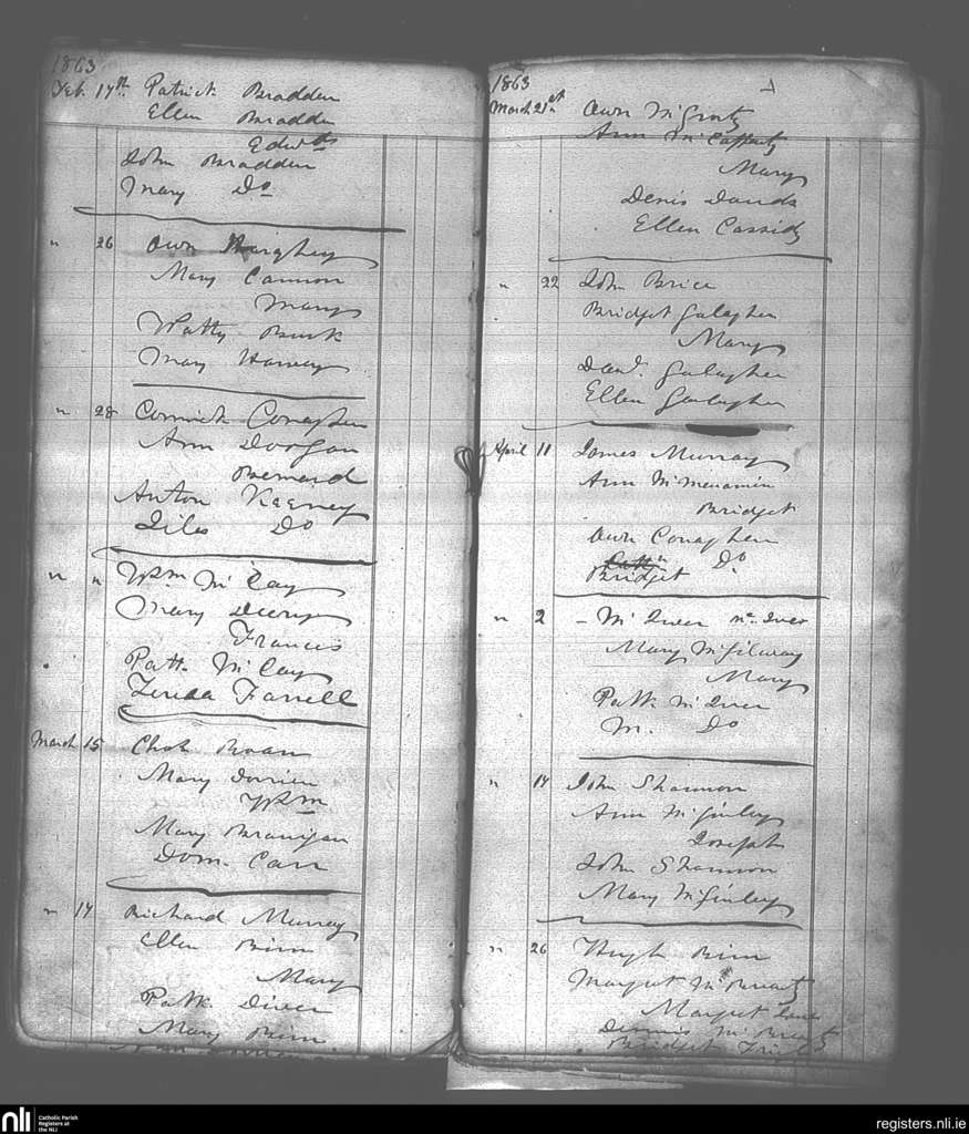 Killaghtee; County of Donegal; Diocese of Raphoe. Baptisms, Feb. 1863 to Apr. 1863