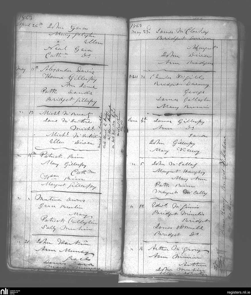 Killaghtee; County of Donegal; Diocese of Raphoe. Baptisms, Apr. 1863 to June 1863
