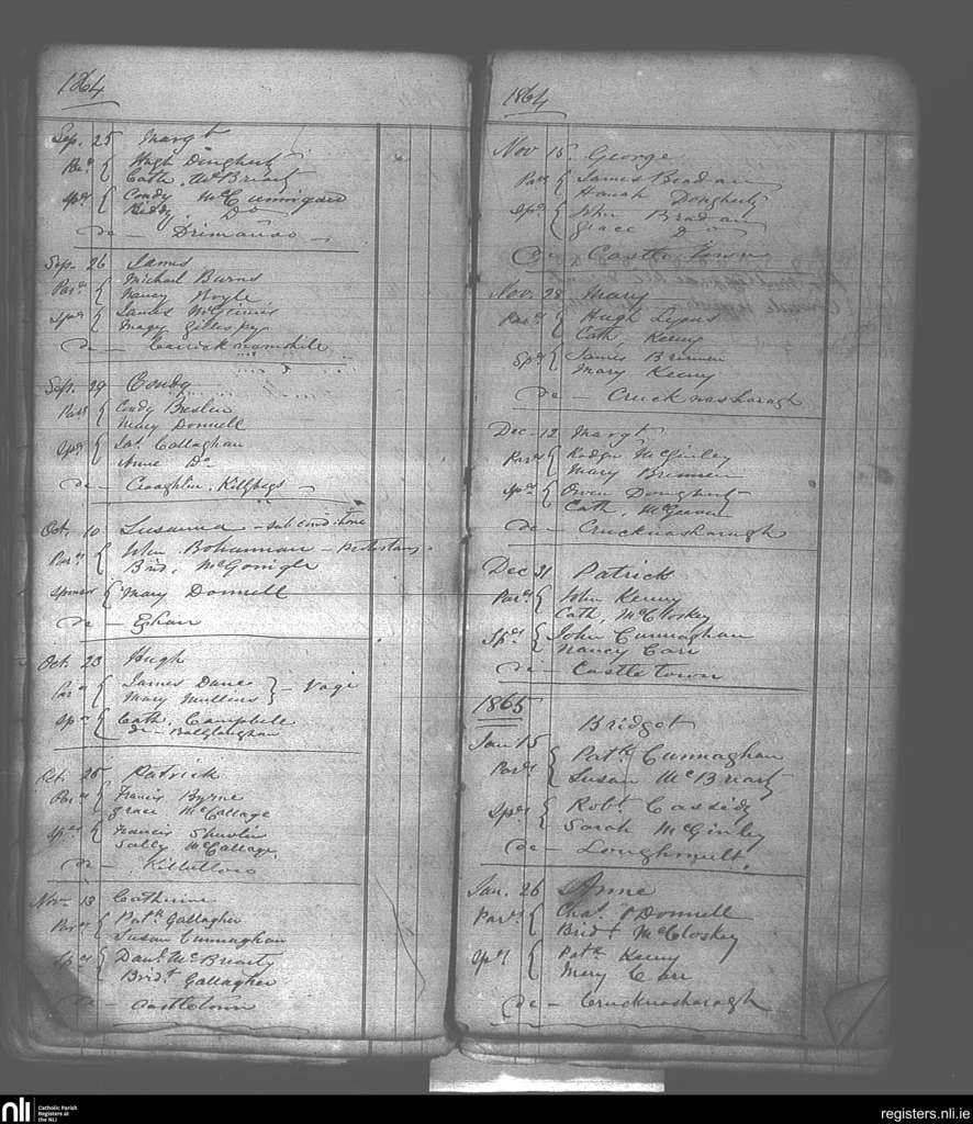 Killaghtee; County of Donegal; Diocese of Raphoe. Baptisms, Sep. 1864 to Jan. 1865