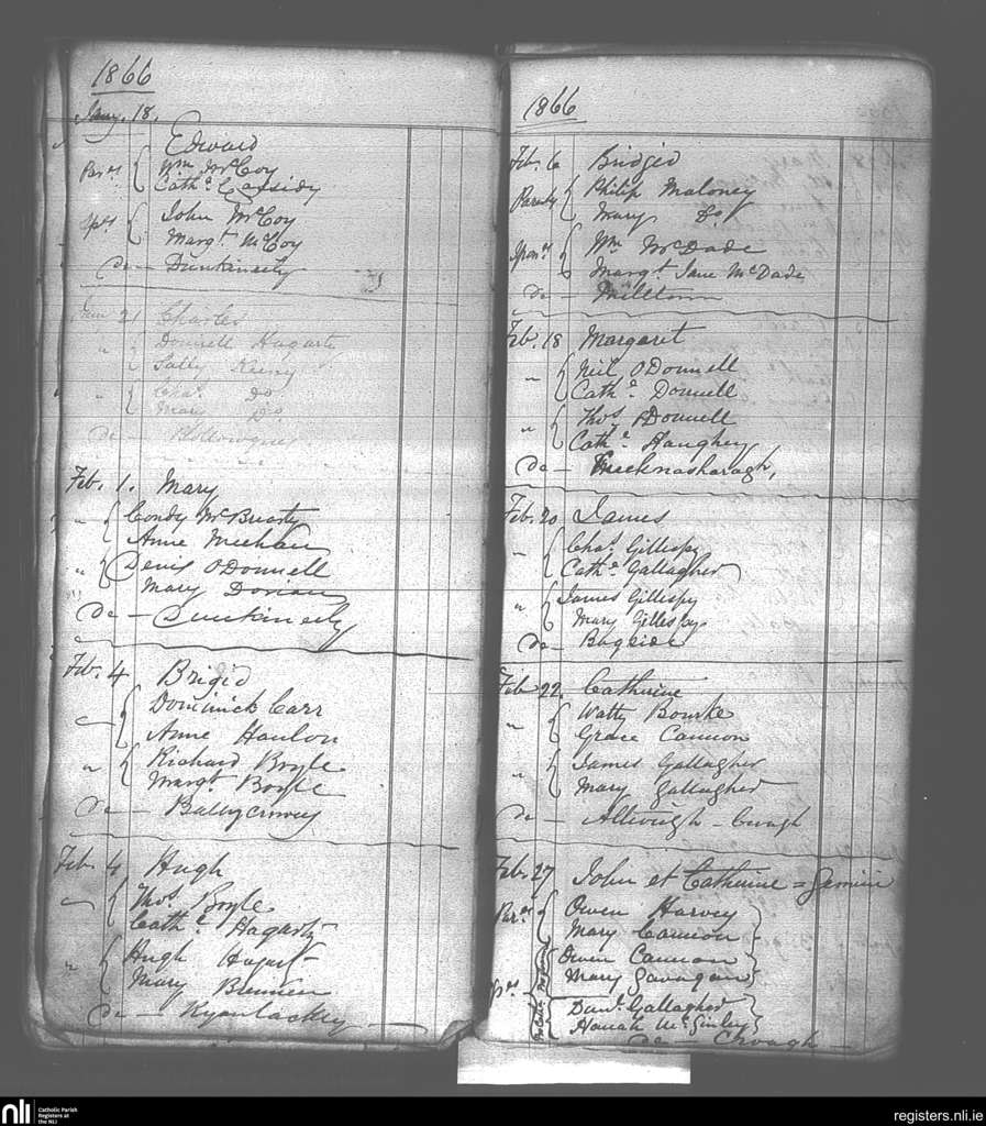 Killaghtee; County of Donegal; Diocese of Raphoe. Baptisms, Jan. 1866 to Feb. 1866