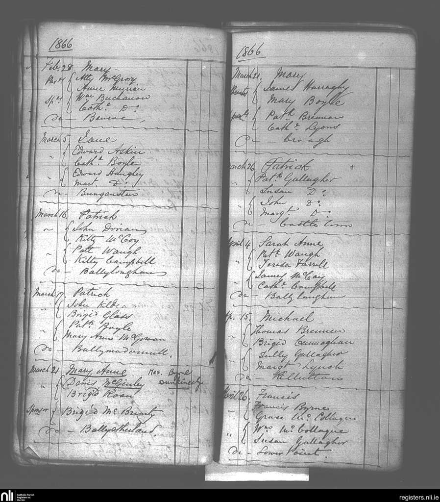 Killaghtee; County of Donegal; Diocese of Raphoe. Baptisms, Feb. 1866 to Apr. 1866