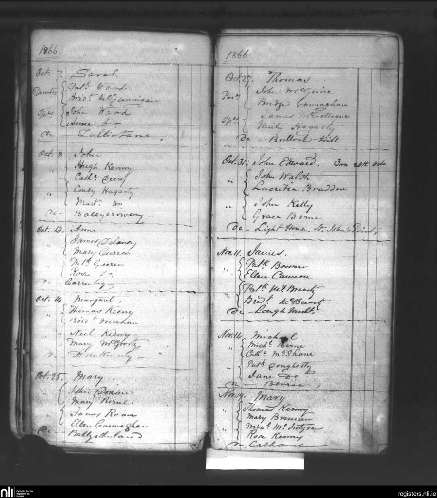 Killaghtee; County of Donegal; Diocese of Raphoe. Baptisms, Oct. 1866 to Nov. 1866