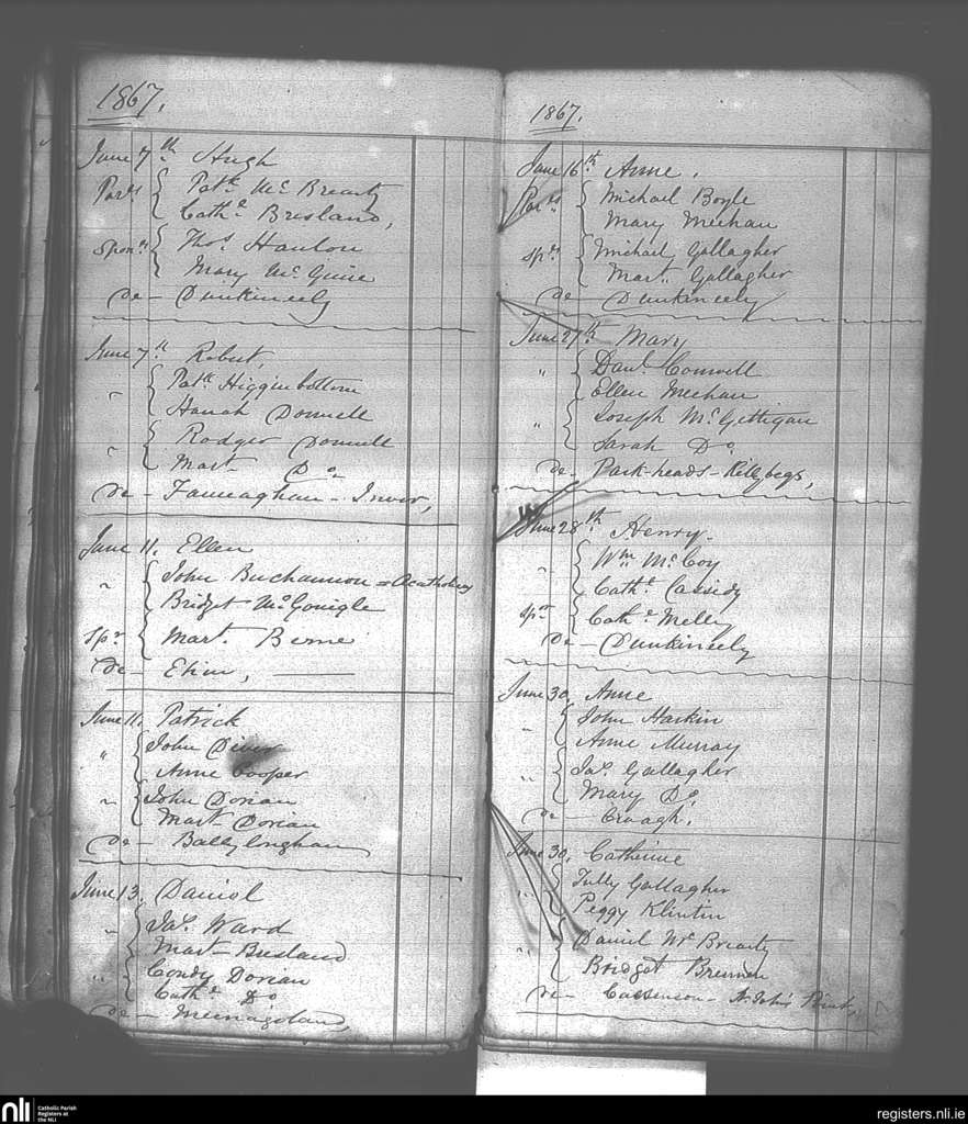 Killaghtee; County of Donegal; Diocese of Raphoe. Baptisms, June 1867