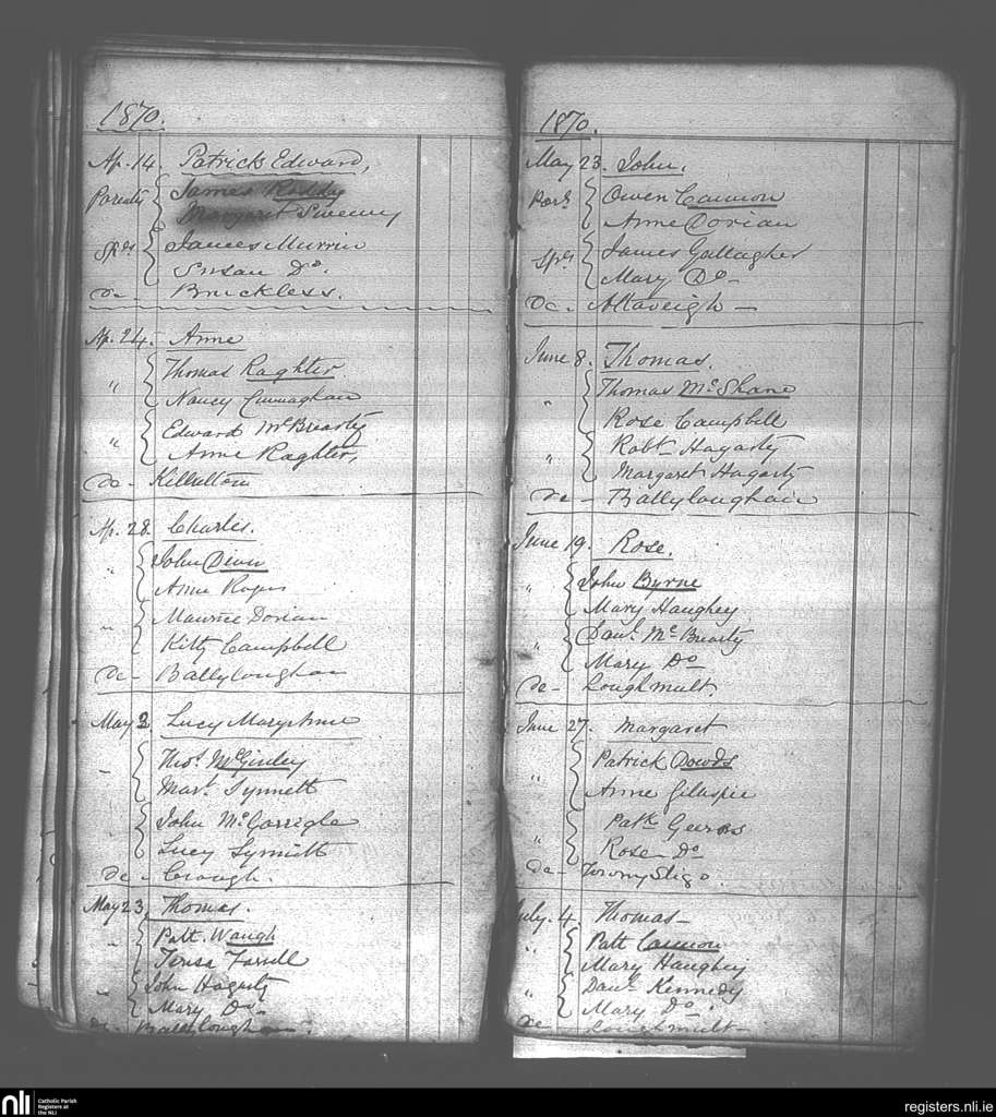 Killaghtee; County of Donegal; Diocese of Raphoe. Baptisms, Apr. 1870 to July 1870