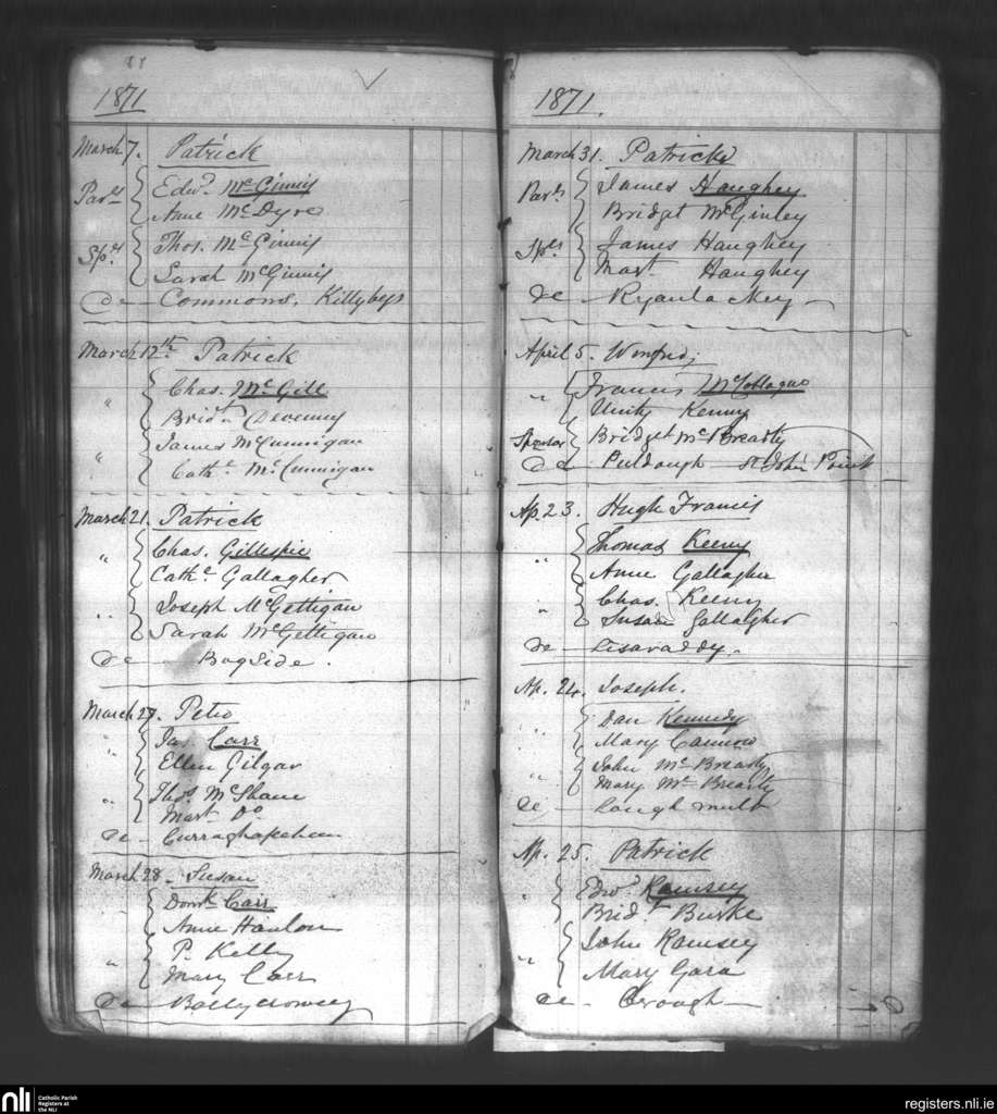 Killaghtee; County of Donegal; Diocese of Raphoe. Baptisms, Mar. 1871 to Apr. 1871