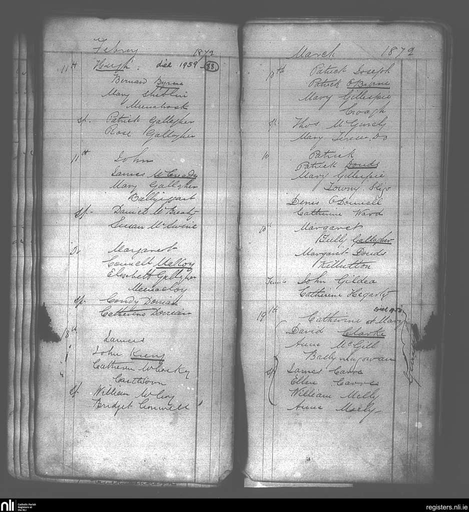 Killaghtee; County of Donegal; Diocese of Raphoe. Baptisms, Feb. 1872 to Mar. 1872