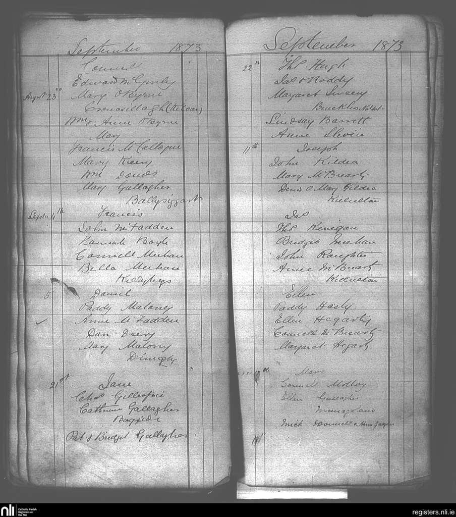 Killaghtee; County of Donegal; Diocese of Raphoe. Baptisms, Aug. 1873 to Nov. 1873
