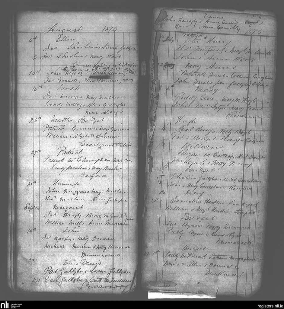 Killaghtee; County of Donegal; Diocese of Raphoe. Baptisms, Aug. 1874 to Feb. 1875