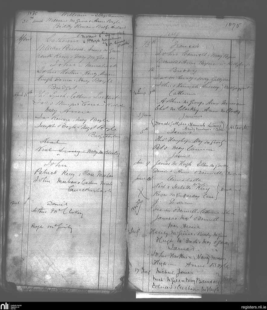 Killaghtee; County of Donegal; Diocese of Raphoe. Baptisms, Mar. 1875 to July 1875
