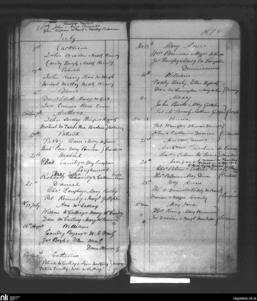 Killaghtee; County of Donegal; Diocese of Raphoe. Baptisms, July 1875 to Dec. 1875