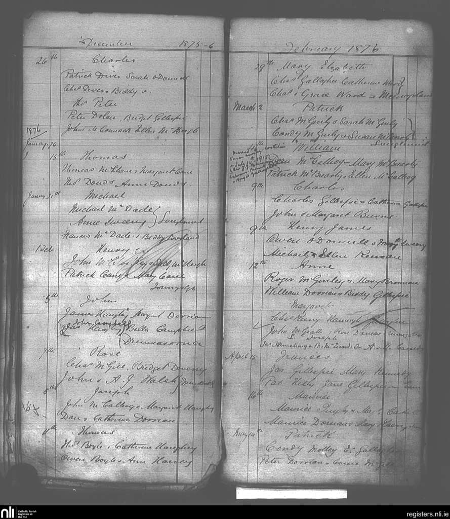 Killaghtee; County of Donegal; Diocese of Raphoe. Baptisms, Dec. 1875 to May 1876