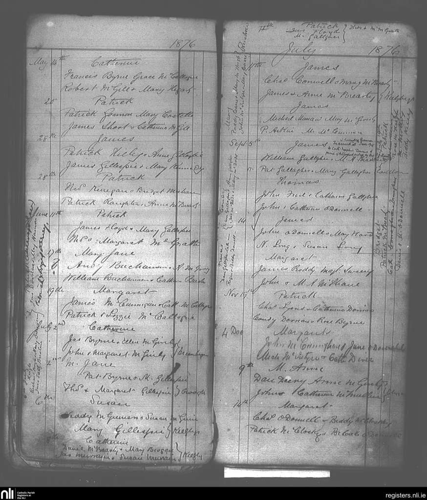 Killaghtee; County of Donegal; Diocese of Raphoe. Baptisms, May 1876 to Dec. 1876