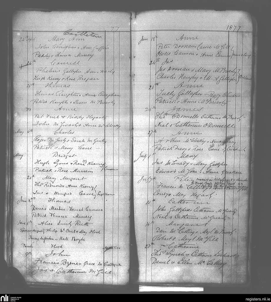 Killaghtee; County of Donegal; Diocese of Raphoe. Baptisms, Apr. 1877 to July 1877