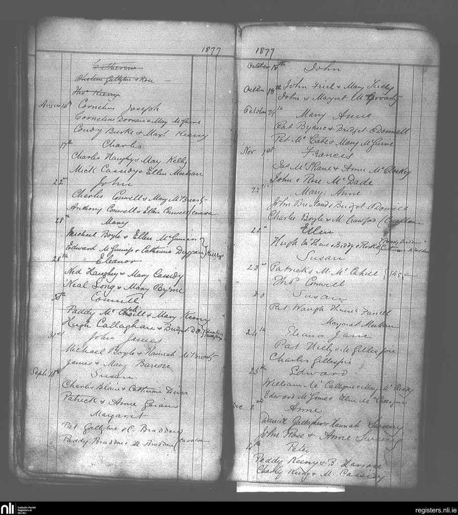 Killaghtee; County of Donegal; Diocese of Raphoe. Baptisms, Aug. 1877 to Dec. 1877