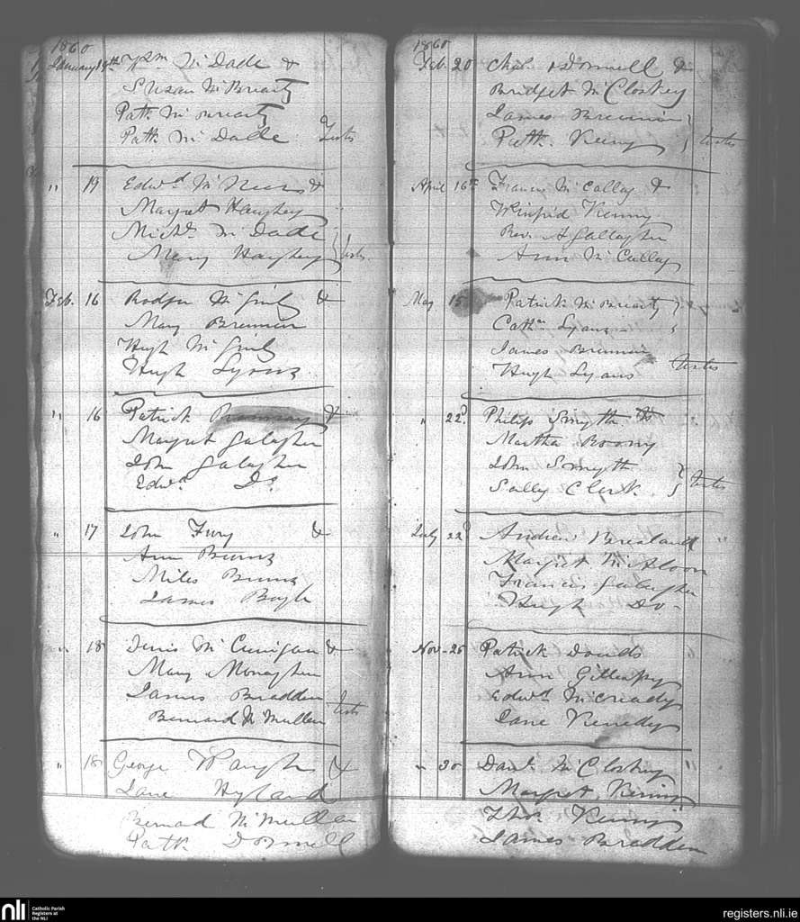 Killaghtee; County of Donegal; Diocese of Raphoe. Marriages, Jan. 1860 to Nov. 1860