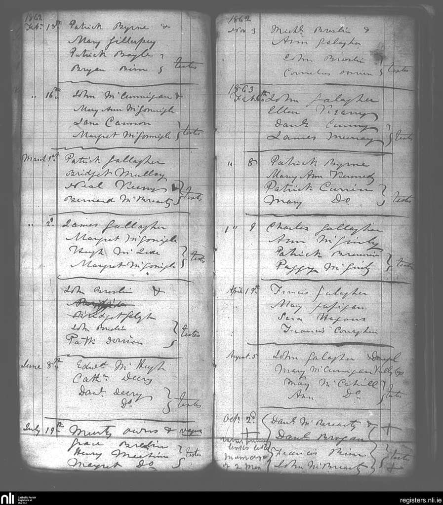 Killaghtee; County of Donegal; Diocese of Raphoe. Marriages, Feb. 1862 to Oct. 1863