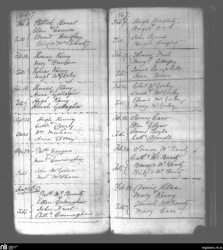Killaghtee; County of Donegal; Diocese of Raphoe. Marriages, Feb. 1866 to Feb. 1867