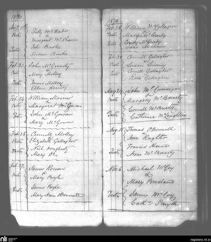 Killaghtee; County of Donegal; Diocese of Raphoe. Marriages, Jan. 1870 to Nov. 1870