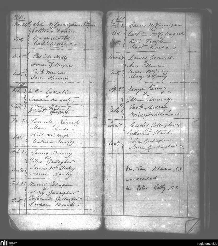 Killaghtee; County of Donegal; Diocese of Raphoe. Marriages, Nov. 1870 to June 1871