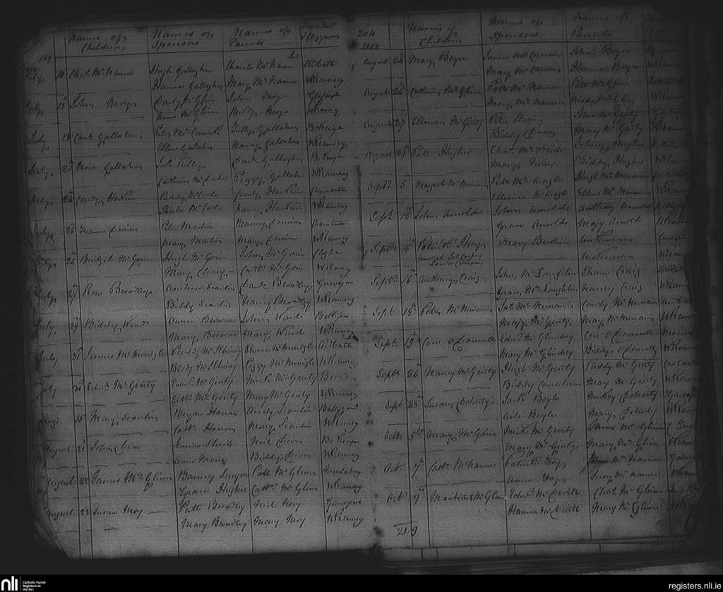 Kilteevogue; County of Donegal; Diocese of Raphoe. Baptisms, July 1858 to Oct. 1858