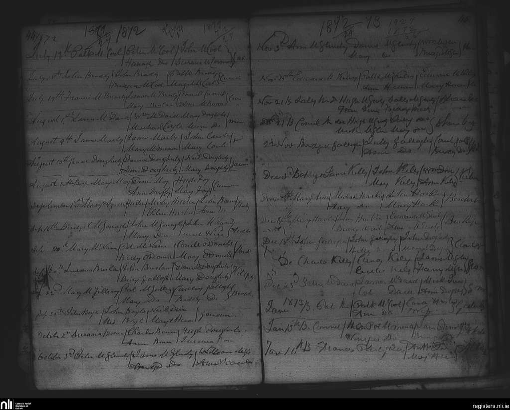 Kilteevogue; County of Donegal; Diocese of Raphoe. Baptisms, July 1872 to Jan. 1873