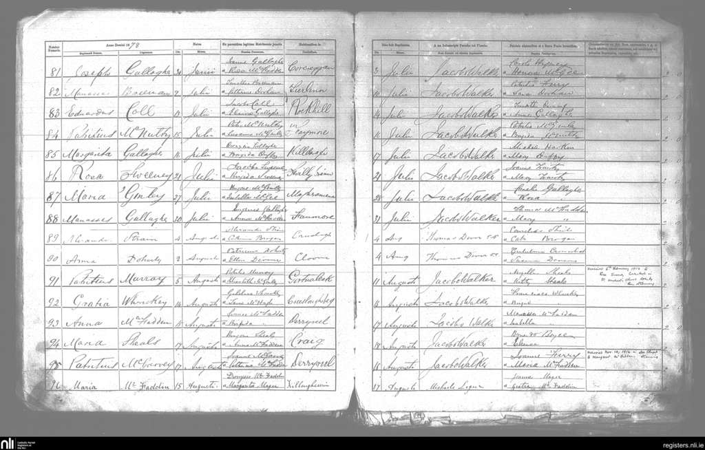 Clondahorkey; County of Donegal; Diocese of Raphoe. Baptisms, July 1878 to Aug. 1878