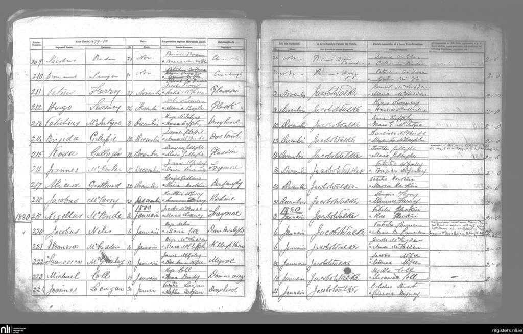 Clondahorkey; County of Donegal; Diocese of Raphoe. Baptisms, Nov. 1879 to Jan. 1880
