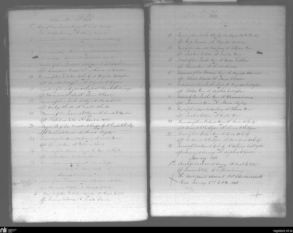 Clondavadoc; County of Donegal; Diocese of Raphoe. Baptisms, Nov. 1853 to Jan. 1854