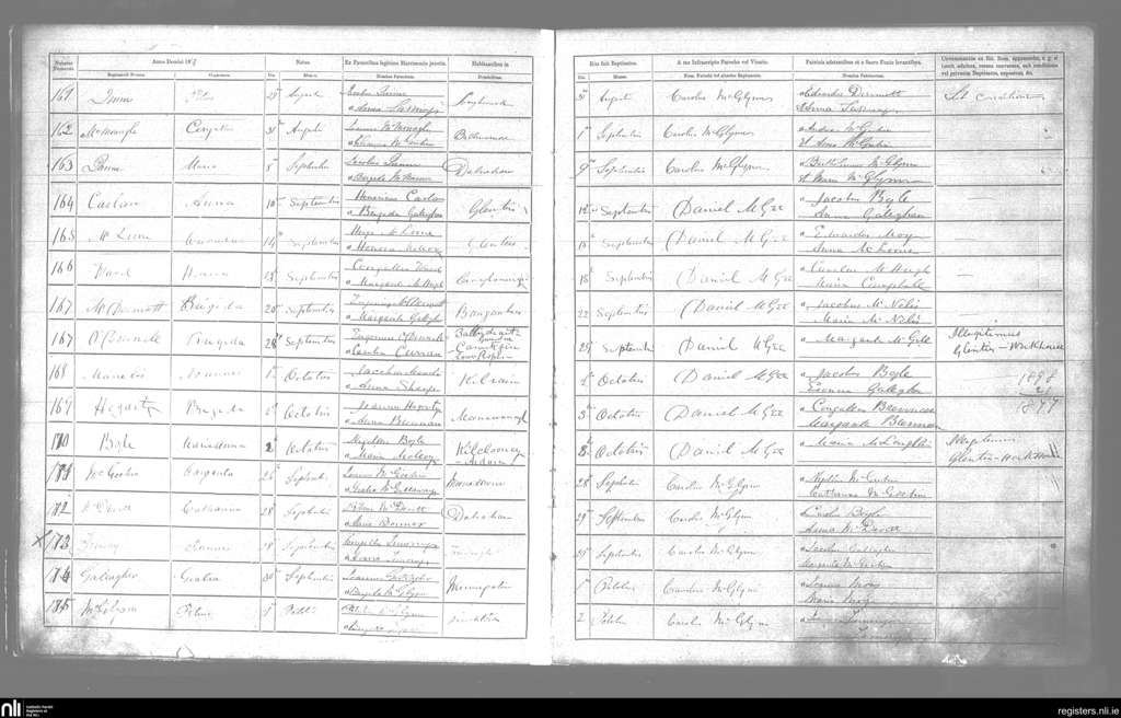 Inniskeel; County of Donegal; Diocese of Raphoe. Baptisms, Aug. 1867 to Oct. 1867