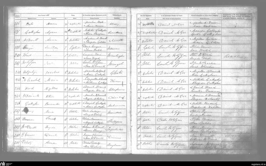 Inniskeel; County of Donegal; Diocese of Raphoe. Baptisms, Sep. 1868 to Oct. 1868