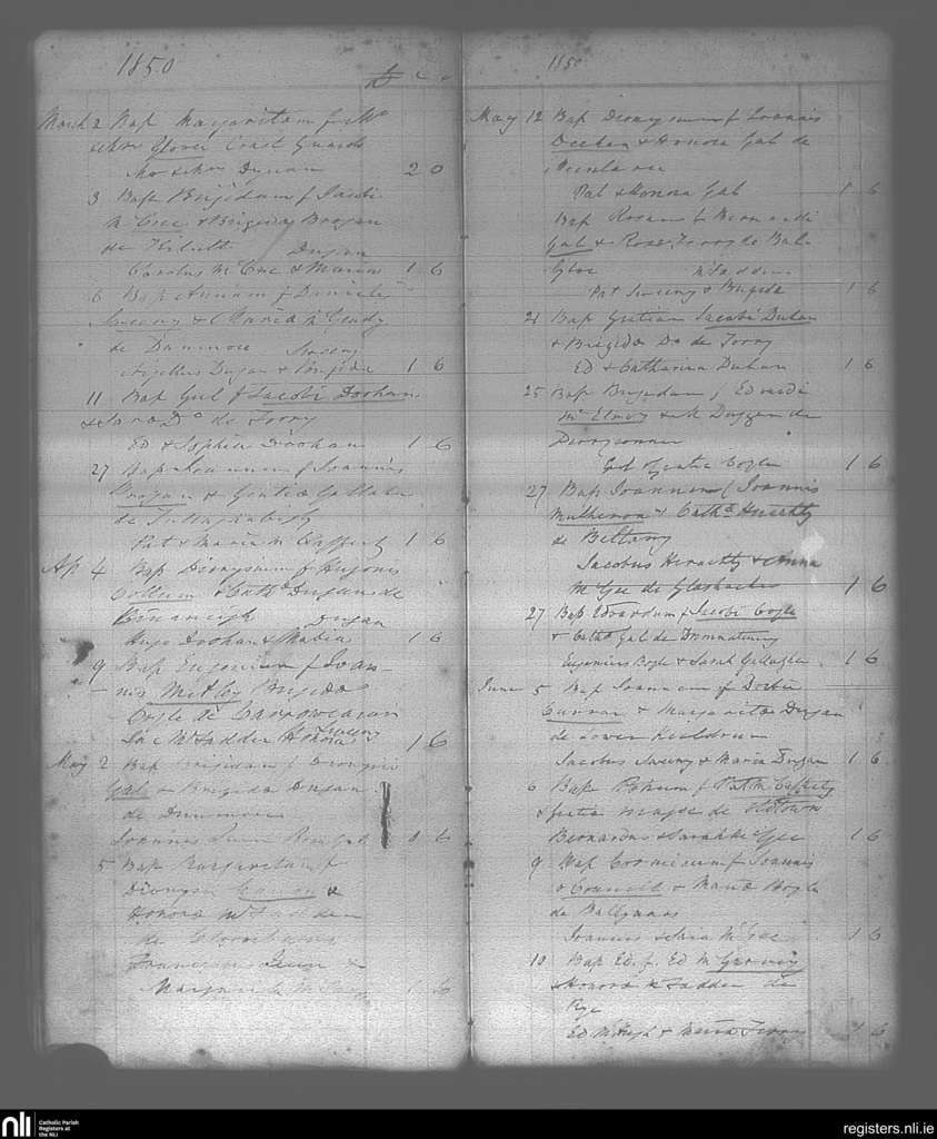 Gortahork; County of Donegal; Diocese of Raphoe. Baptisms, Mar. 1850 to June 1850