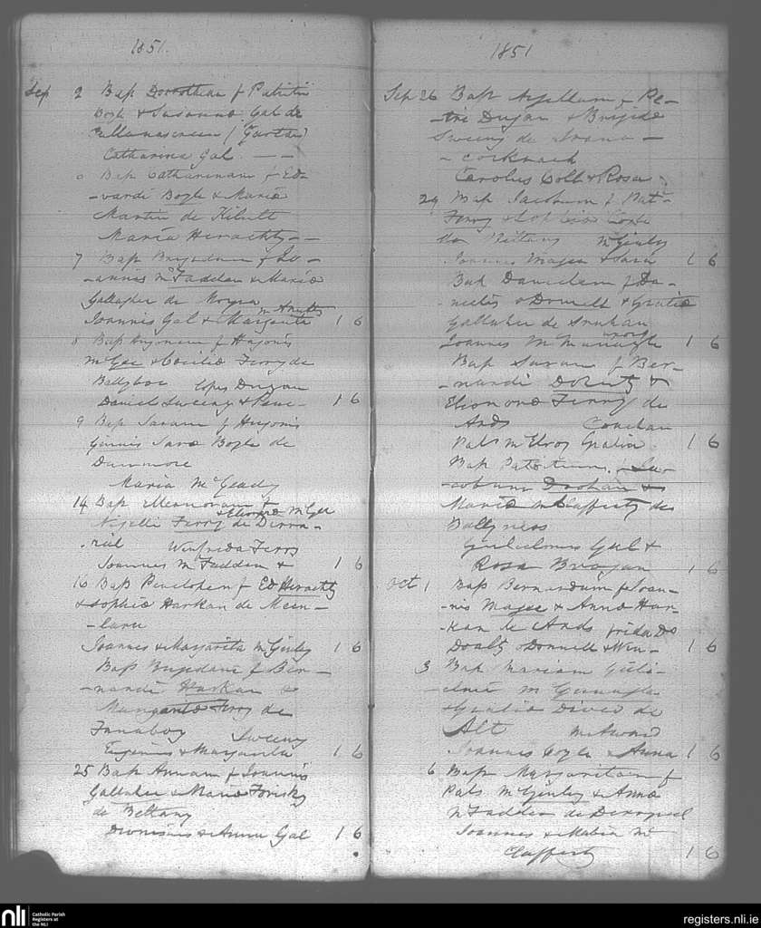 Gortahork; County of Donegal; Diocese of Raphoe. Baptisms, Sep. 1851 to Oct. 1851