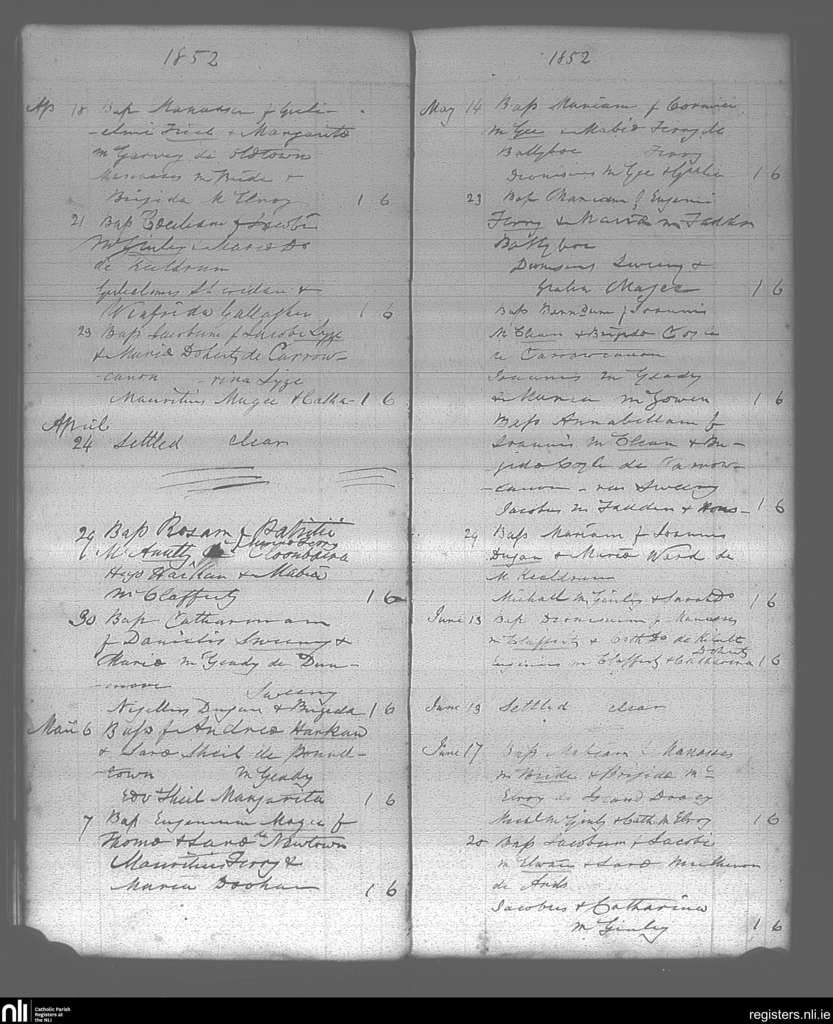 Gortahork; County of Donegal; Diocese of Raphoe. Baptisms, Apr. 1852 to June 1852