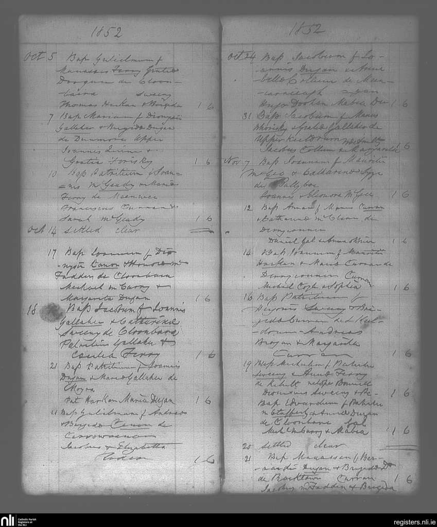 Gortahork; County of Donegal; Diocese of Raphoe. Baptisms, Oct. 1852 to Nov. 1852