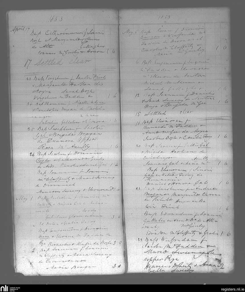 Gortahork; County of Donegal; Diocese of Raphoe. Baptisms, Apr. 1853 to May 1853