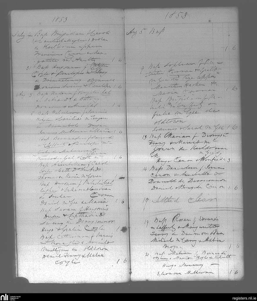 Gortahork; County of Donegal; Diocese of Raphoe. Baptisms, July 1853 to Aug. 1853