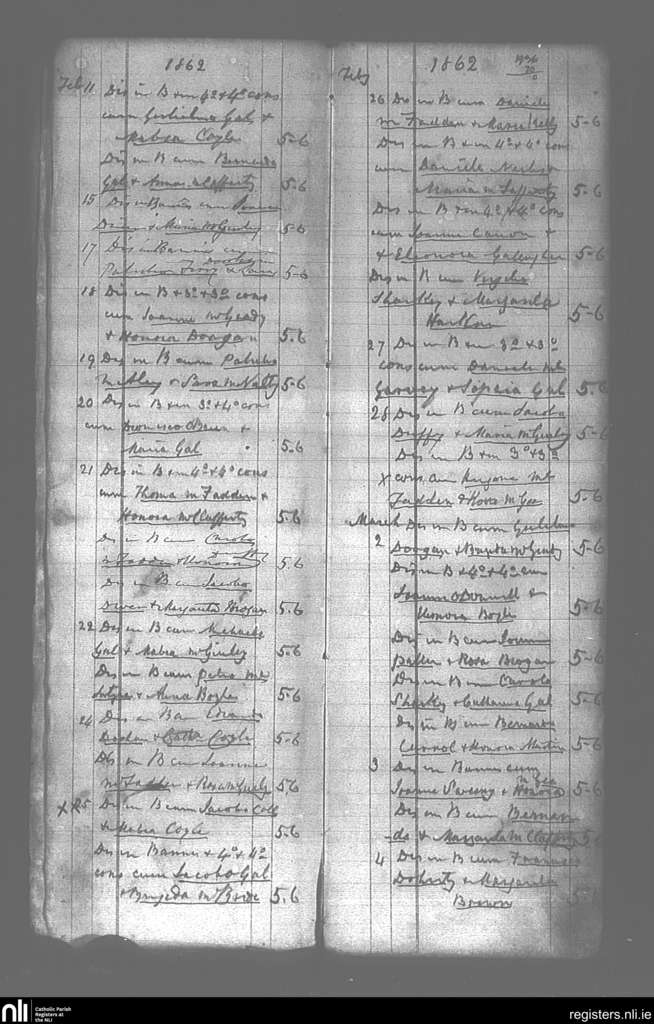 Gortahork; County of Donegal; Diocese of Raphoe. Marriages, Feb. 1862 to Mar. 1862