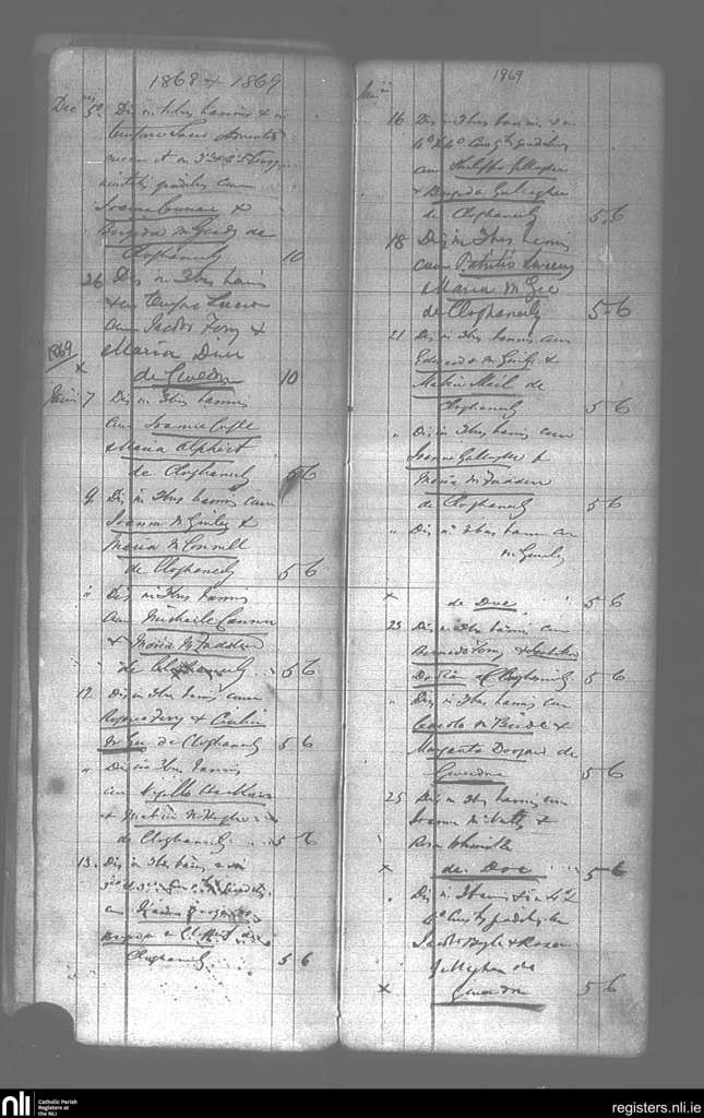 Gortahork; County of Donegal; Diocese of Raphoe. Marriages, Dec. 1868 to Jan. 1869