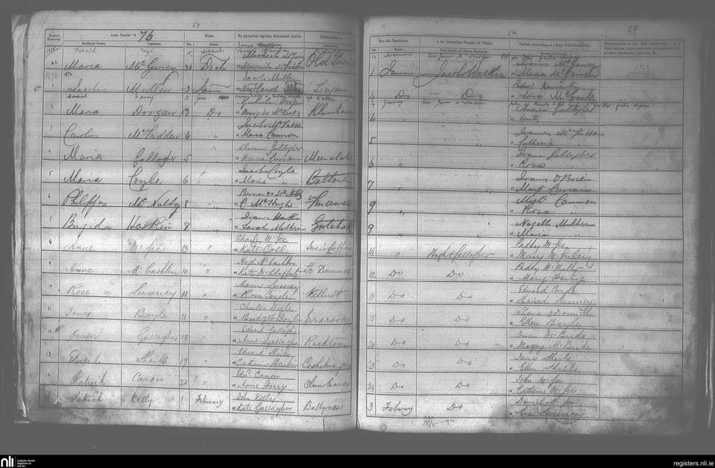 Gortahork; Contae Donegal; Deoise Raphoe. Baptisms, Ean. 1876 go dtí an Feabh. 1876
