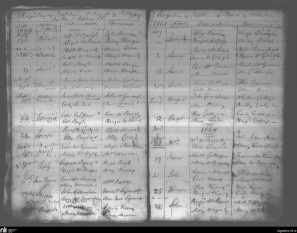 Killybegs; County of Donegal; Diocese of Raphoe. Baptisms, July 1868 to Jan. 1869