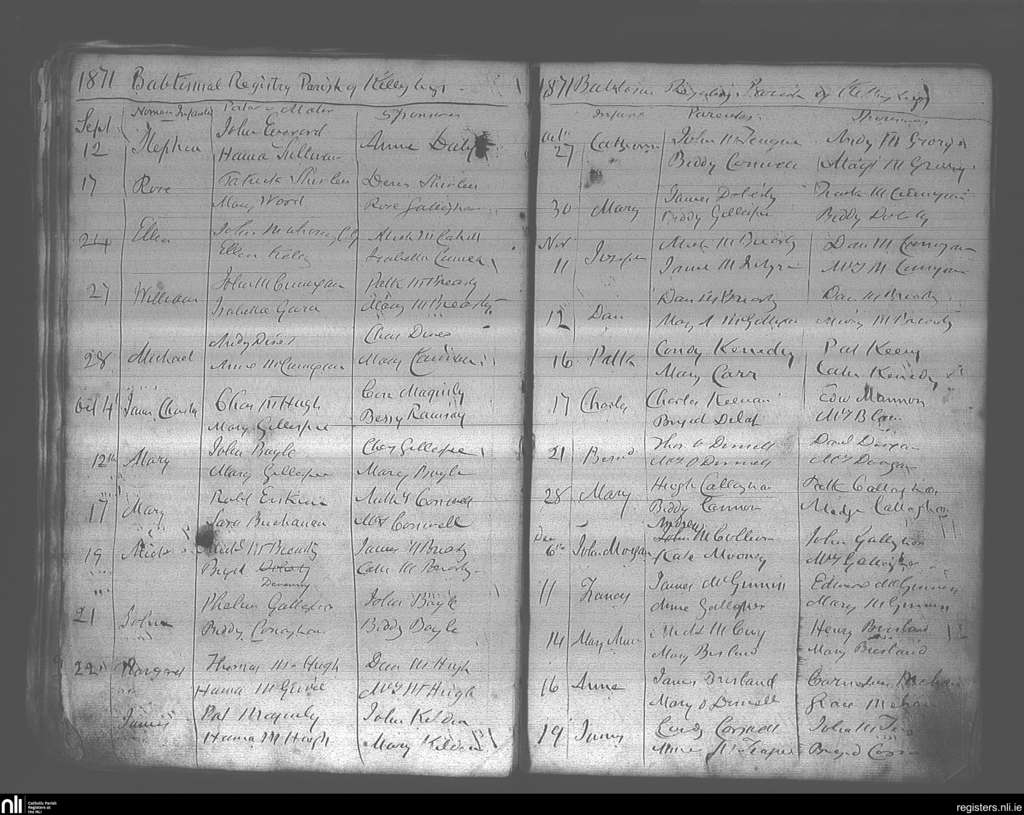 Killybegs; County of Donegal; Diocese of Raphoe. Baptisms, Sep. 1871 to Dec. 1871