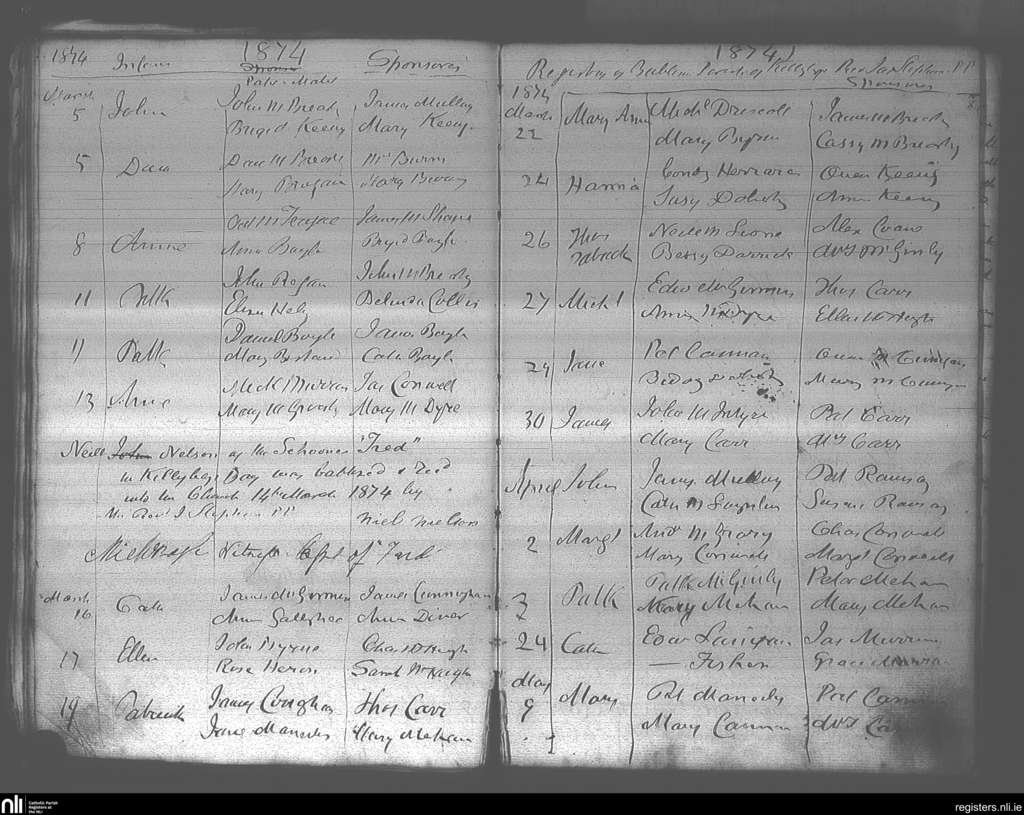 Killybegs; County of Donegal; Diocese of Raphoe. Baptisms, Mar. 1874 to May 1874