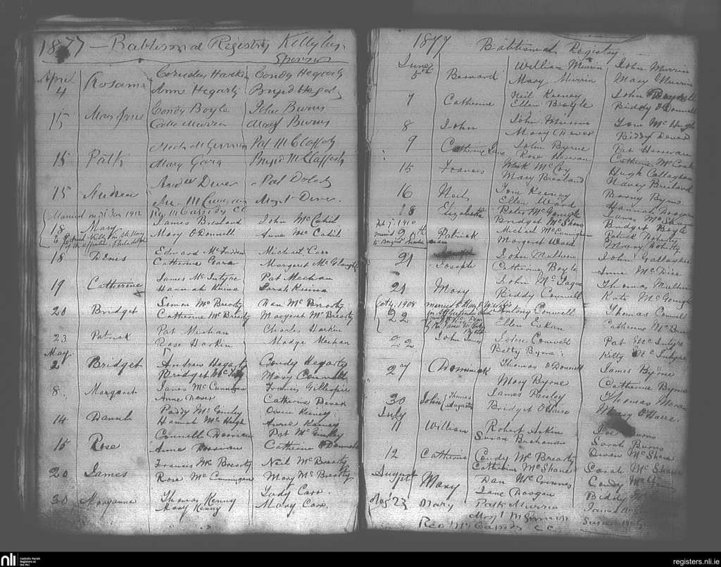 Killybegs; County of Donegal; Diocese of Raphoe. Baptisms, Marriages, Apr. 1877 to Jan. 1912