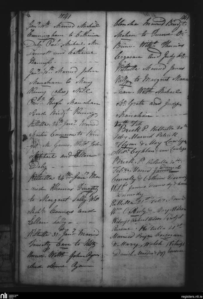 Kiltullagh; County of Galway; Diocese of Clonfert. Marriages, Jan. 1841 to Feb. 1841